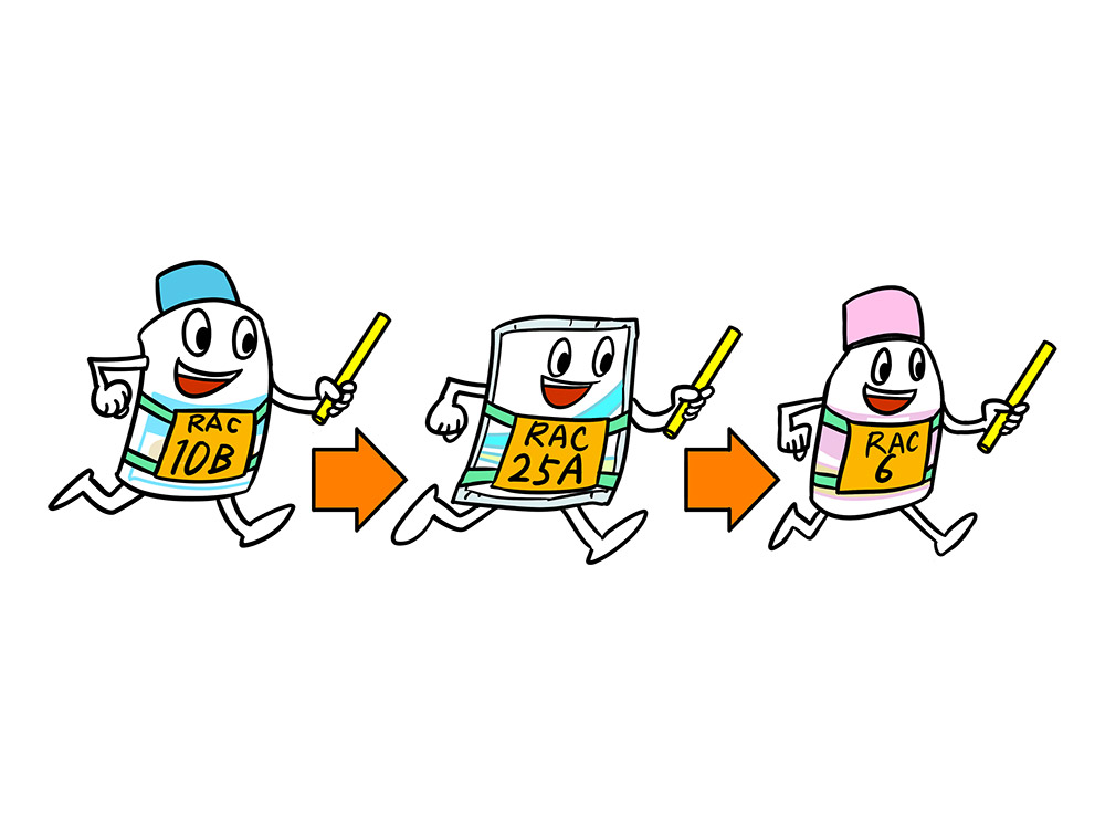 化学薬剤を効果的に末永く使用するためには、抵抗性・耐性を発達させない作用機作を意識したローテーションが必要です。気門封鎖剤は抵抗性が発達しにくいので、ローテーションに組み込んでいきましょう。