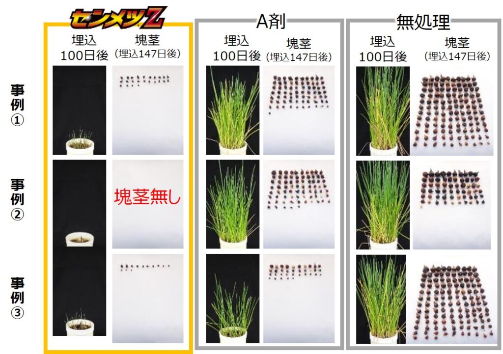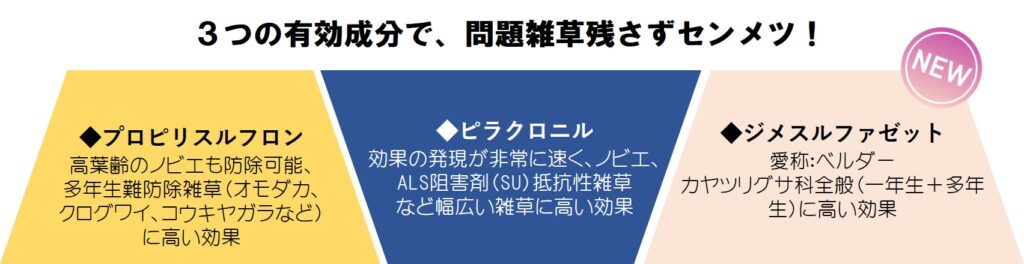 センメツZは、3つの有効成分を含有する一発処理除草剤です。