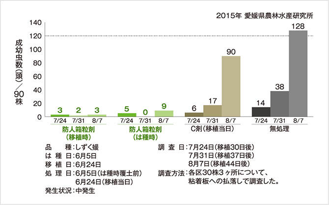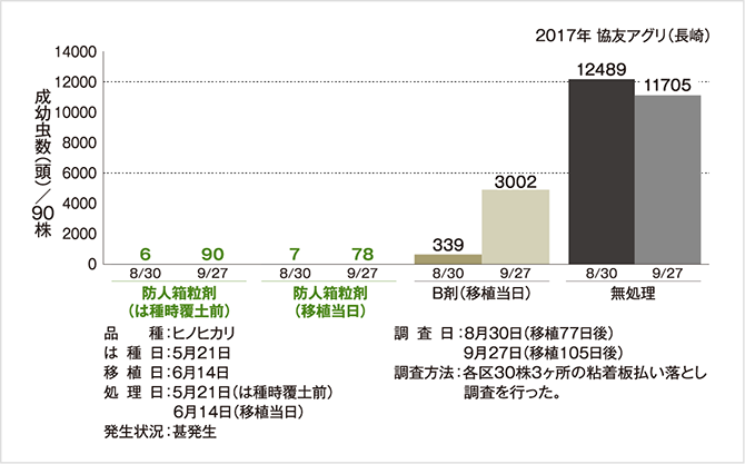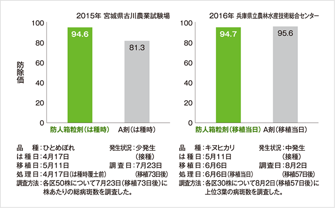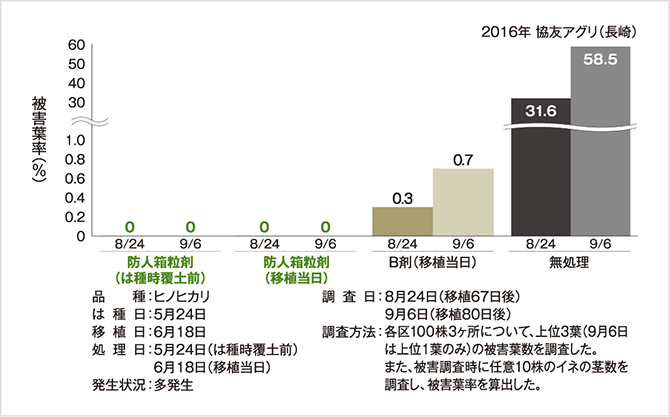 - イネに対する安全性が高く、は種時~移植時まで使用可能です。